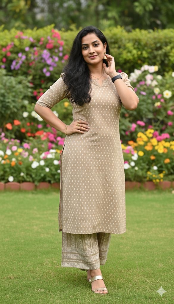 Paired with coordinated printed pants, this ensemble strikes the perfect balance between classic charm and modern comfort. Crafted from soft, breathable fabric, it is ideal for office wear, casual outings, or relaxed festive gatherings. Style it with minimal jewellery for a polished ethnic look.