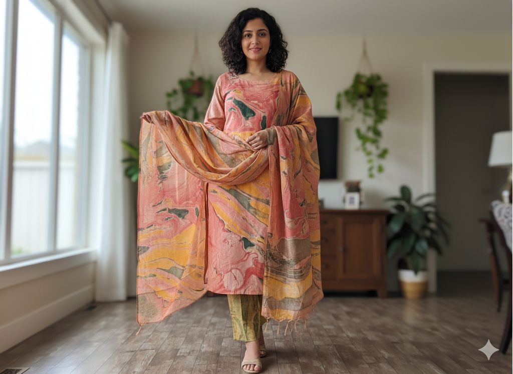 Perfect for women who appreciate comfort with creative expression, this kurti set brings understated sophistication to your everyday wardrobe.